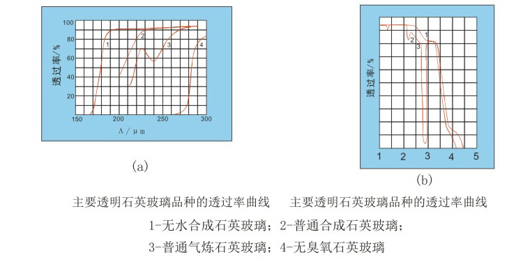 和普通硅酸鹽玻璃相比,透明石英玻璃在整個波長頭優良的透過性能。在紅外區光譜透過比普通玻璃大;在可見區,石英玻璃的透過率也是比較高的。在紫外光譜區特別是在短波紫外區,光譜透過比其他玻璃好的多。